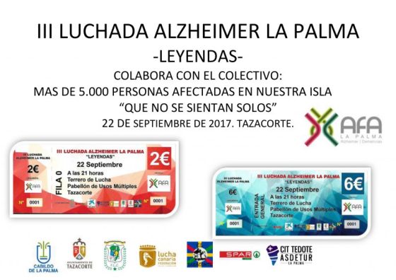 El viernes 22 de septiembre de 2017, en Tazacorte, tendrá lugar la tercera edición de la Luchada Alzheimer La Palma, a beneficio de la Asociación de Familiares de Enfermos de Alzheimer y otras Demencias de La Palma.