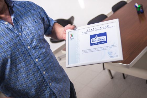 Juan José González Cabrera, Gerente de Aguas de La Palma SL, recibe de manos del Presidente de la Asociación AFA La Palma la certificación que acredita el compromiso social y responsable de esta empresa palmera.
