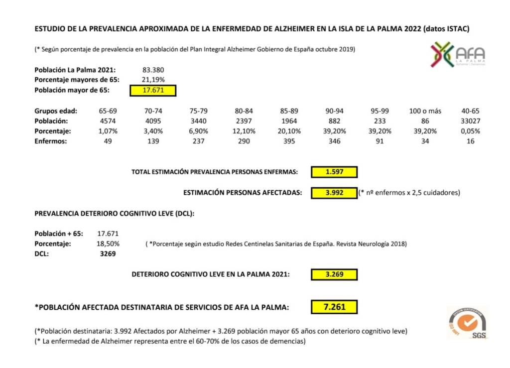 Hoy publicamos nuestro estudio anual de prevalencia aproximada de personas afectadas por las demencias y el deterioro cognitivo en nuestra isla. Unos datos que reflejan otro importante reto para los próximos años donde el envejecimiento de la población hará aumentar estar cifras.